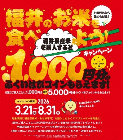 大野産米を買って、1,000円分の「ふくいはぴコイン」をもらおう!